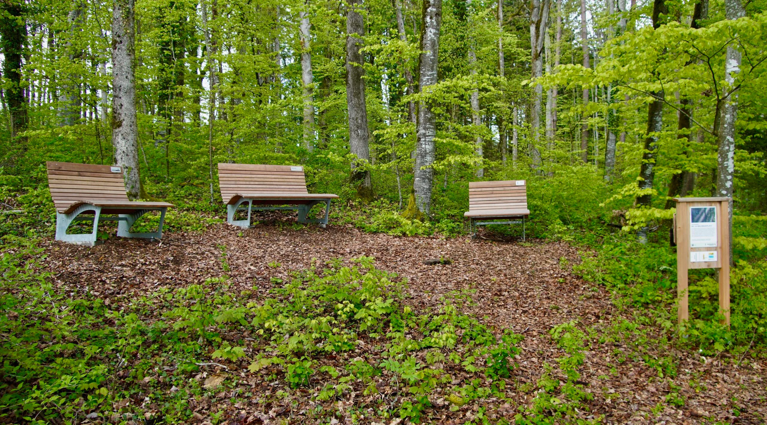 Die acht Naturelemente wie Ameisenhaufen, Türkenbundlilien, Magerwiese, Asthaufen, Wildbienen, Waldbadeplatz, Totholzbaum und Panoramatafel versprechen einiges und laden ein zum verweilen. Am Waldbadeplatz führen Achtsamkeit und Entspannung zu einem wohltuenden Walderlebnis. Den Abschluss bildet eine Panoramatafel, die die herrliche Bergwelt mit ihren Gipfeln zeigt.